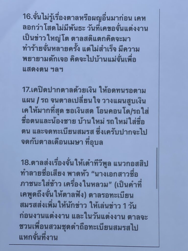 ทนายนิด้า ศรัณยา เปิดเผยข้อความแชท อดีตผู้จัดการ จั๊กจั่น อคัมย์สิริ ส่งให้กับ บุ๋ม ปนัดดา และสื่อเพื่อสร้างเรื่องโลกใบที่ 2 จนกลายเป็นเรื่องราวใหญ่โต รวมไปถึงข้อความแชทที่อ้างว่า เค วัฒนา ทำธุรกิจสีเทา และยุ่งเกี่ยวยาเสพติด โดยเป็นการสร้างเรื่องเท็จขึ้นมาทั้งหมด