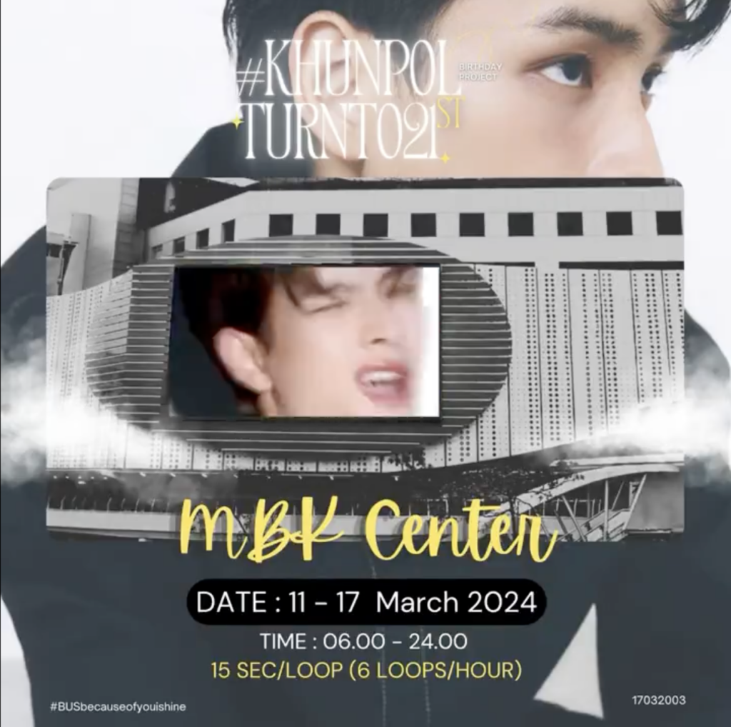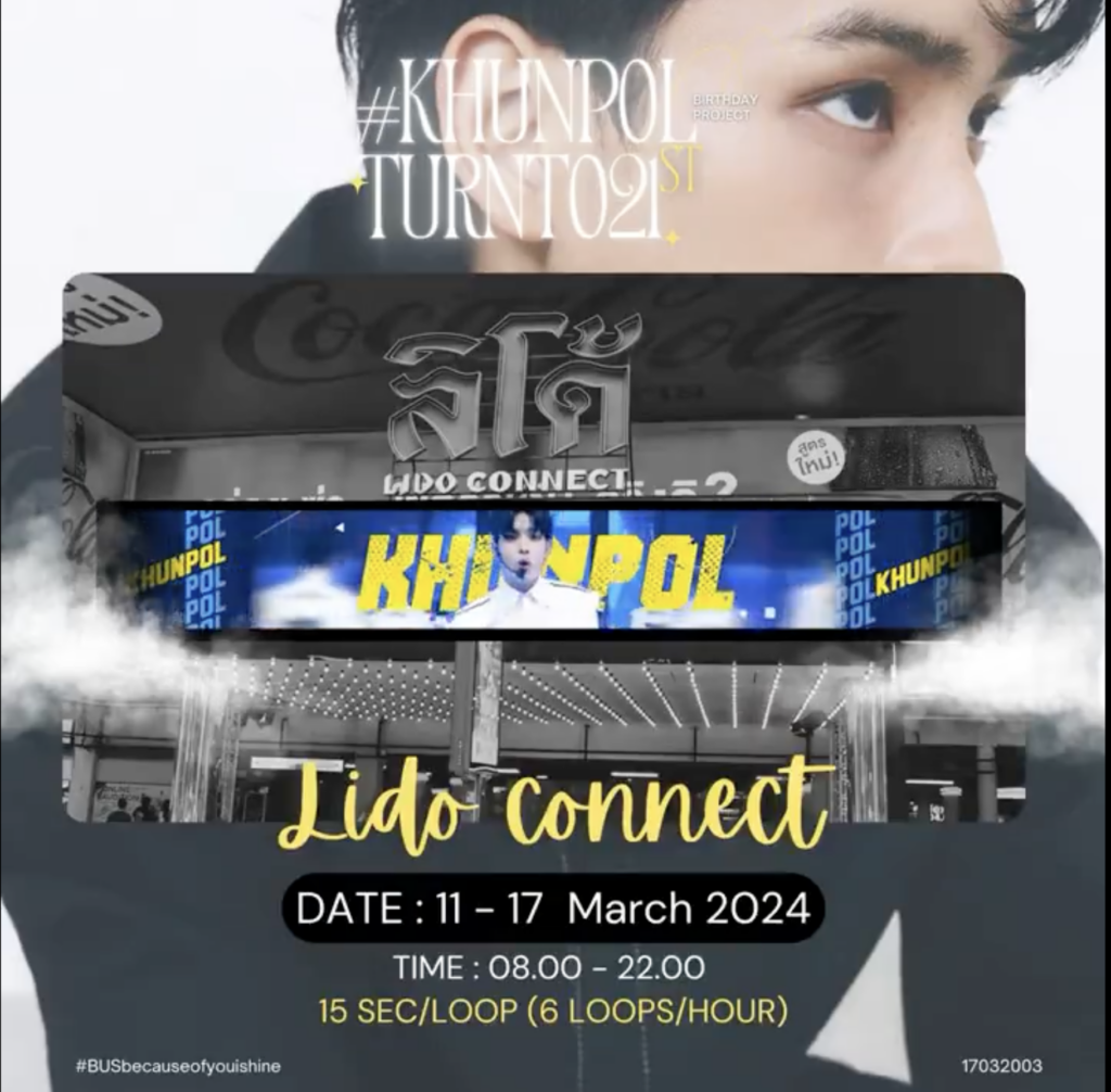 17 มีนาคม ของทุกปี จะไม่ธรรมดาอีกต่อไป เพราะเป็นวันสำคัญของใจที่ต้องจารึกไว้ในเมมโมรี่ เป็นอีกหนึ่งวันดีๆของหนุ่มที่มีรอยยิ้มพิมพ์ใจ นั่นก็คือ “ขุนพล ปองพล ปัญญามิตร” หนึ่งในสมาชิกวง BUS-Because of you I shine ที่ในปีนี้จะอายุครบ 21 ปีบริบูรณ์ ซึ่งแฟนๆก็ขอจัดใหญ่ จัดเต็ม เติมพลังใจ บอกให้โลกรู้ว่ารักมากแค่ไหน ไม่ว่าจะเป็น โปรเจกต์คาเฟ่ ,PROJECT LED LIDO และ PROJECT LED MBK บอกเลยว่าจัดให้แบบจุกๆ ให้ทุกคนมาร่วมส่งต่อความสุขถึงเจ้าตัวได้ยิ้มแก้มแตกกันไปเลย