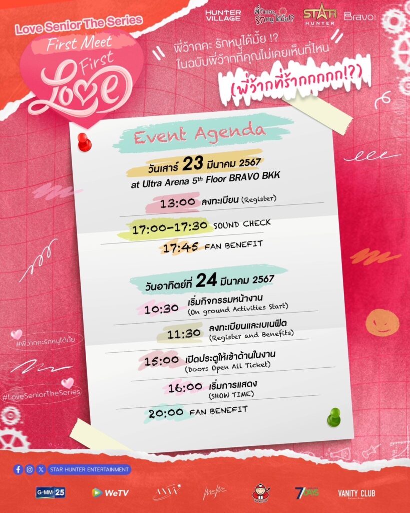 สำหรับแฟนๆ ที่อยากจะมีโมเมนต์ดีๆ ร่วมกับนักแสดงซีรีส์ Girl’s Love “พี่ว้ากคะ รักหนูได้มั้ย!?” (LOVE SENIOR THE SERIES) เหมือนชาวไทเป พลาดไม่ได้กับงานแฟนมีตติ้ง LOVE SENIOR THE SERIES 1ST FAN MEETING : LOVE SENIOR FIRST MEET FIRST LOVE ที่จะยกขบวนมาแจกความฟินกันแบบครบทีม! ในวันอาทิตย์ที่ 24 มีนาคม 2567 ตั้งแต่เวลา14.00 น. เป็นต้นไป ณ Ultra Arena Hall ชั้น 5 Bravo BKK พระราม 9 สามารถจองบัตรได้แล้วตั้งแต่วันนี้ผ่านทาง https://www.ticketmelon.com/starhunterent/love-senior-first-meet-first-love-fanmeet