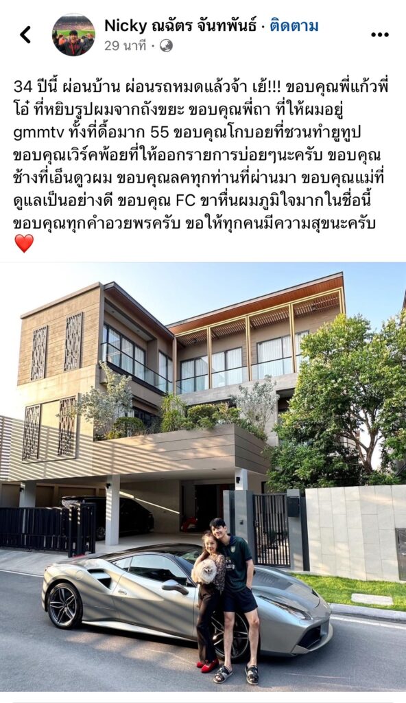 เป็นวันคล้ายวันเกืดอายุครบ 34 ปีที่หนุ่ม “นิกกี้ ณฉัตร” แฮปปี้และมีความสุขมากจริงๆ เพราะล่าสุดเจ้าตัวประกาศข่าวดีว่าวันเกิดปีนี้ผ่อนบ้านราคากว่า 40 ล้าน และรถหรู หมดแล้ว เรียกว่าคุ้มค่ากับการทุ่มเททำงานมากจริงๆ