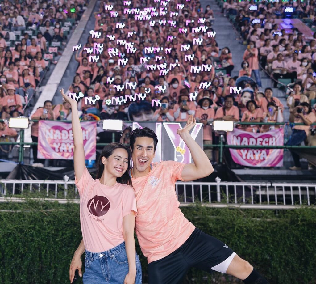 “ที่พี่แบร์พูดก็ถูกค่ะ เขาไม่ได้พูดผิดค่ะ ยังไม่มีวันจริงๆ ยังไม่ได้แพลนด้วยซ้ำค่ะ ยังไม่ได้คุยเรื่องกำหนดกันเลย คือญ่าชิลค่ะ ญ่ามีแค่ละครเรื่องเดียวแต่พี่แบร์เขาทำเยอะมาก ซึ่งเขาไม่เคยต้องทำอะไรแบบนี้มาก่อน ก็เลยไม่อยากกดดันค่ะ ไม่ได้รีบๆ ไม่ต้องพรุ่งนี้ ปีหน้า ปีถัดไป ไม่ได้รีบเลยค่ะ ญ่ายังไม่มีแพลนอะไรเลยค่ะ ยังไม่มีวันด้วย ก็ถ้าได้วันเมื่อไหร่จะมาบอกเลยค่ะ ส่วนที่มีคนสังเกตรูปหน้าจอโทรศัพท์ของพี่แบร์เป็นรูปเรา สวยไหม ก็ถ้ายังไม่เปลี่ยนน่าจะเป็นรูปที่อิตาลีค่ะ ทุกอย่างยังแฮปปี้ค่ะ ซัปพอร์ต 100% ค่ะ”