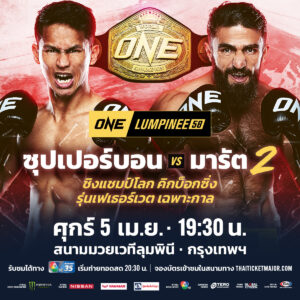 สำหรับศึก ONE ลุมพินี 58 คู่เอกนำรายการ “ซุปเปอร์บอน สิงห์มาวิน” อดีตราชันคิกบ็อกซิ่งรุ่นเฟเธอร์เวต วัย 33 ปี เตรียมเปิดศึกภาคสอง ดวลเดือดคู่ปรับตัวฉกาจ “มารัต กริกอเรียน” จอมบู๊วัย 32 ปี จากอาร์เมเนีย โดยมีเข็มขัดแชมป์โลก ONE คิกบ็อกซิ่ง รุ่นเฟเธอร์เวต เฉพาะกาล เป็นเดิมพัน