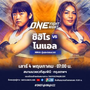 สองสาวประชันแกร่ง “โนแอล” อาสาหยุดไร้พ่าย “ชิฮิโร” ศึก ONE Fight Night 22