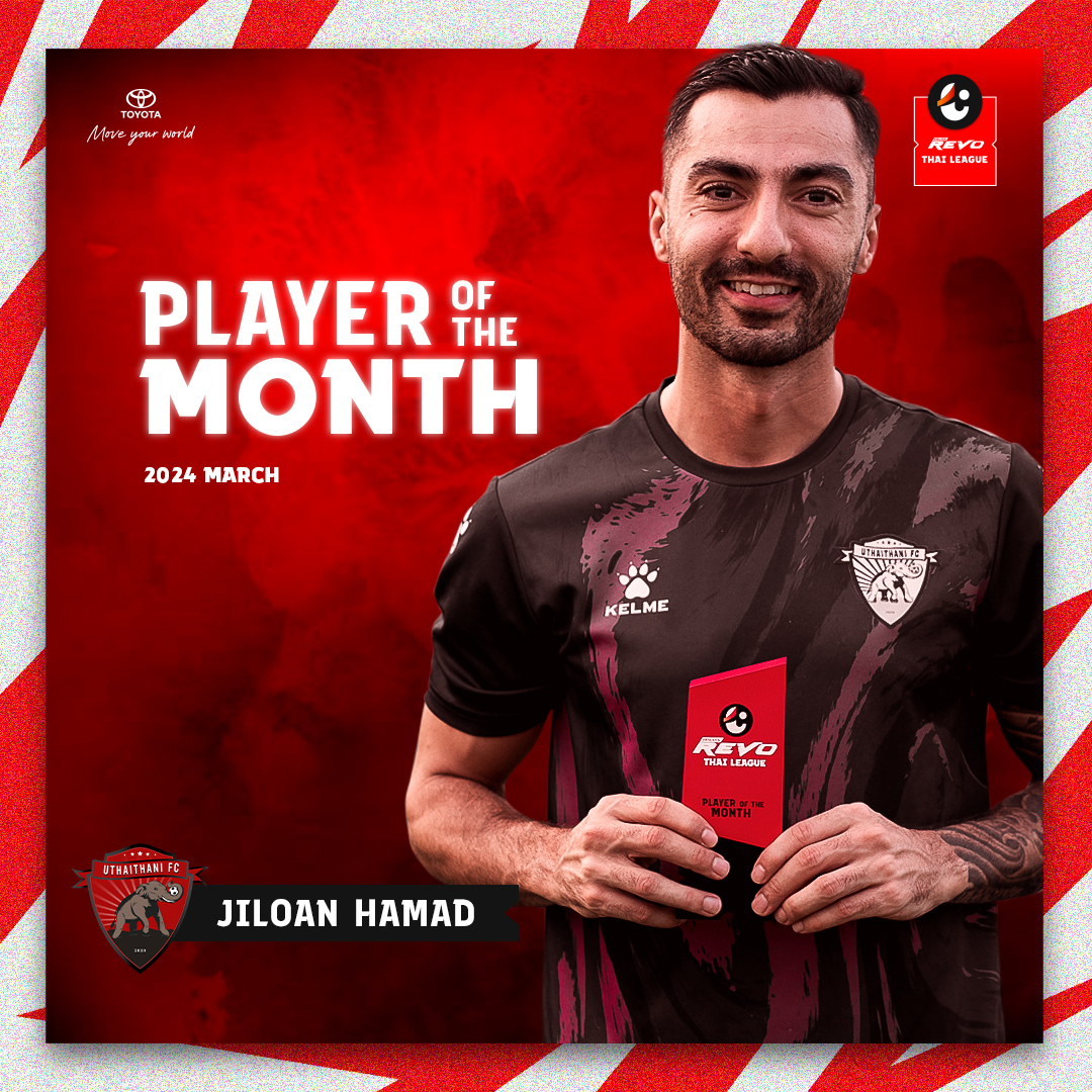 ขณะที่ นักเตะยอดเยี่ยมประจำเดือนมีนาคมนั้น ตกเป็นของ จีโลน ฮาหมัด ดาวเตะคนสำคัญของ อุทัยธานี เอฟซี ด้วยฟอร์มการเล่นที่ยอดเยี่ยมลงสนามไป 3 นัด ยิง 4 ประตูและทำได้อีก 1 แอสซิสต์ เขาคือกำลังสำคัญของ “ช้างป่าห้วยขาแข้ง” ที่กำลังลุ้นอยู่รอดใน รีโว่ ไทยลีก ต่อไป