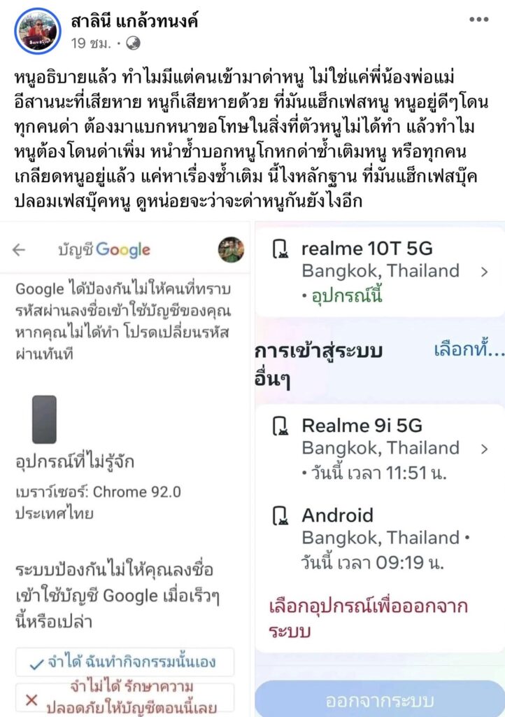 “ตาหวาน สาลินี” แจงดราม่าเหยียดคนอีสาน พร้อมปาหลักฐาน ยันตนโดนแฮกเฟซ วอนหยุดด่า