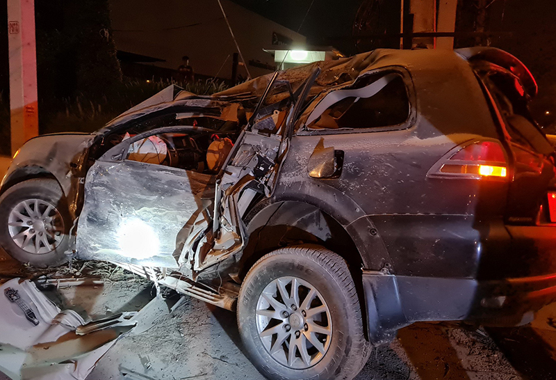 ที่เกิดเหตุ พบรถยนต์ยี่ห้อมิตซูมิชิ ปาเจโร่ หมายเลขทะเบียน ขค 4026 ชลบุรี สีดำ ชนอัดกับเสาไฟส่องสว่างไหล่ถนน สภาพรถพังเสียหาย และเสาไฟได้รับความเสียหาย ใกล้กันพบผู้ได้รับบาดเจ็บเป็นชาย 1ราย ได้รับบาดเจ็บศีรษะแตก มีแผลฉีกขาดที่หลัง ถลอกตามร่างกาย อยู่ในอาการมึนงง กู้ภัยทำการช่วยทำการปฐมพยาบาลเบื้องต้น ก่อนเคลื่อนย้ายส่งรักษายังโรงพยาบาลสมเด็จพระนางเจ้าสิริกิต กรมแพทย์ทหารเรือ