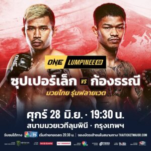 ONE ตบเกียร์ห้าเดินหน้าประกบคู่มวยสุดเดือดเพิ่มเติม ในศึกนัดยิ่งใหญ่แห่งปี ONE ลุมพินี 68 ที่จะถ่ายทอดสดจากสนามมวยเวทีลุมพินี (รามอินทรา) วันศุกร์ที่ 28 มิ.ย.นี้ ล่าสุดแง้มโปรแกรมอีกหนึ่งคู่ไฮไลต์ โดยจะเป็นการพบกันระหว่าง “ซุปเปอร์เล็ก เกียรติหมู่ 9” แชมป์โลก ONE คิกบ็อกซิ่ง รุ่นฟลายเวต (125-135 ป.) ออกโรงทดสอบความแกร่ง “ก้องธรณี ส.สมหมาย” นักกีฬา ONE ป้ายแดง เจ้าของสถิติชนะรวด 7 ไฟต์ติด โดยจะสู้กันในกติกามวยไทย รุ่นฟลายเวต