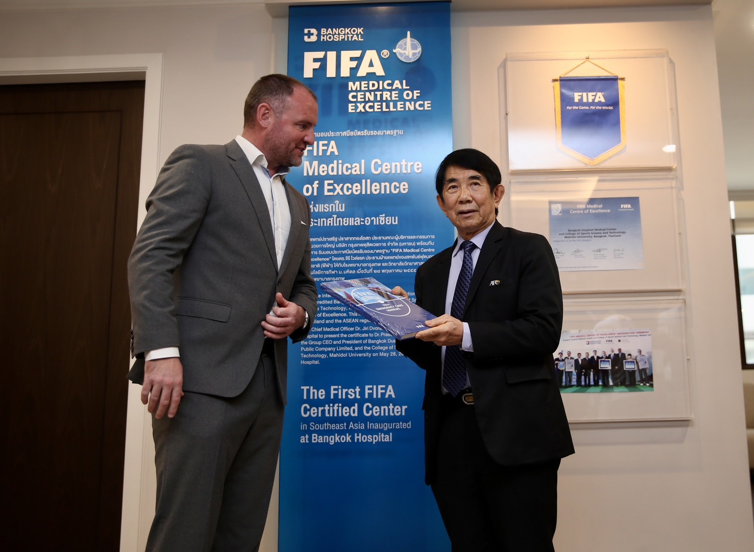 โดย นาวาอากาศเอก(พิเศษ) นพ.ไพศาล จันทรพิทักษ์ ประธานฝ่ายแพทย์ ของสมาคมกีฬาฟุตบอลแห่งประเทศไทย ในพระบรมราชูปถัมภ์ กล่าวว่า “ดร.แอนดรูว์ แมสซีย์ ซึ่งเป็น ผู้อำนวยการฝ่ายการแพทย์ของฟีฟ่า ซึ่งมาร่วมการประชุม ฟีฟ่า คองเกรส 2024 ที่ประเทศไทย ในโอกาสนี้เข้ามาเยี่ยมสถาบันเวชศาสตร์การ กีฬาและออกกำลังกายกรุงเทพ ขอโรงพยาบาลกรุงเทพ สำนักงานใหญ่ เนื่องจาก BASEM ถือเป็นสถาบันที่ได้รับการรับรองจากฟีฟ่า ให้เป็น FIFA Medical Center of Excellence หรือ FMCE ตั้งแต่ปี 2012 โดยได้รับการรับรองจากฟีฟ่าร่วมกับ วิทยาลัยวิทยาศาสตร์และ เทคโนโลยีทางการกีฬา ม.มหิดล โดยที่ FMCE นี้ ถือเป็นแห่งแรก และแห่งเดียวของประเทศไทยและอาเชี่ยน เป็นแห่งที่ 3 ของเอเซีย และ เป็นหนึ่งใน 49 แห่งทั่วโลก ที่ฟีฟ่าให้การรับรองให้เป็นสถานที่ที่จะให้การดูแลนักฟุตบอลในภูมิภาคนั้น ๆ อย่างครบวงจร ตั้งแต่การป้องกันการบาดเจ็บ การให้ ความรู้แก่นักฟุตบอลในเรื่องการใช้วิทยาศาสตร์การกีฬาทางด้านฟุตบอล เพื่อให้นักฟุตบอลมีสมรรถภาพทางกายที่ดี มีความแข็งแรง ซึ่งจะทำให้ลดการบาดเจ็บในสนามแข่งขันลงได้”