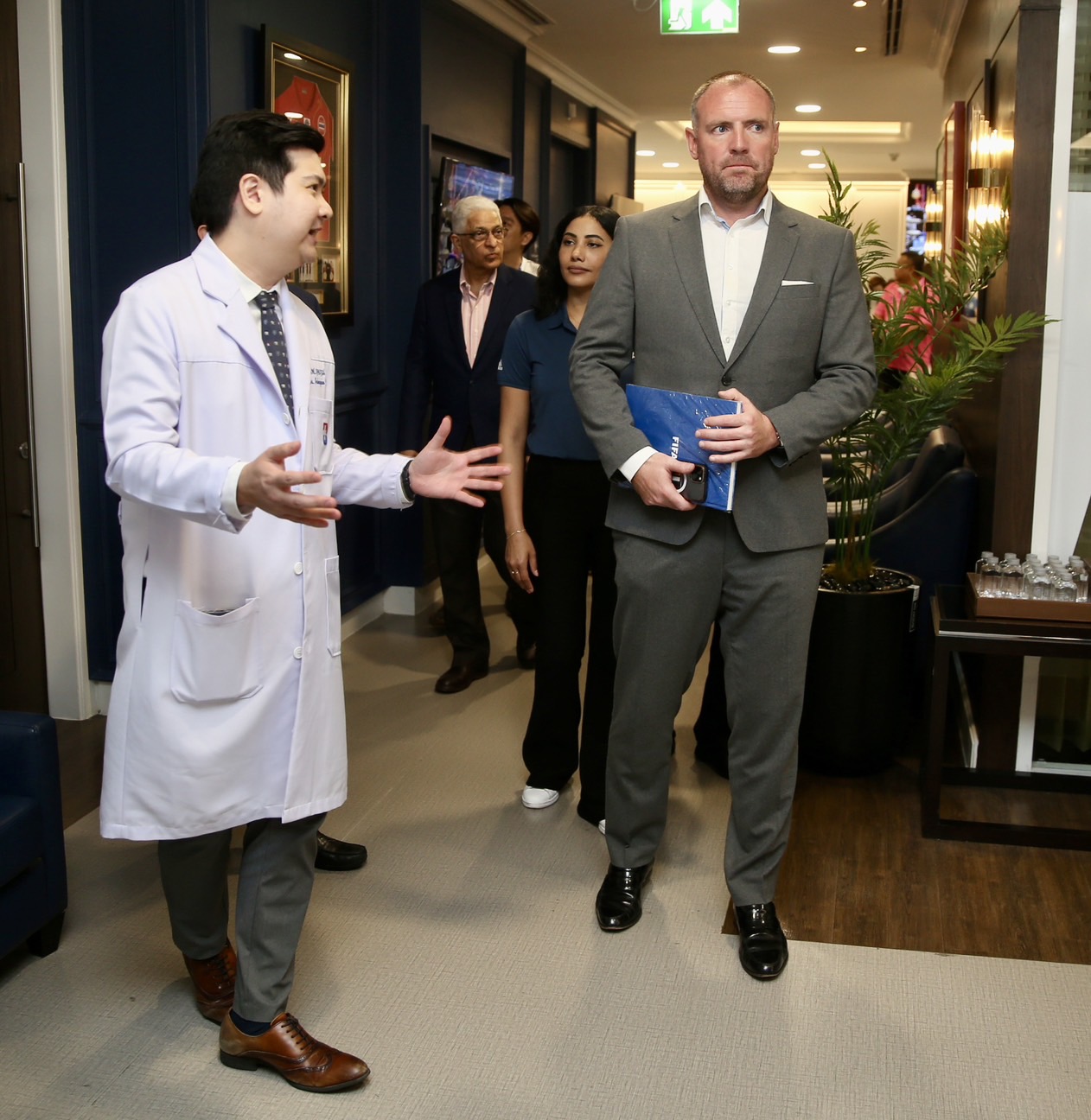 น.ท.นพ.พรเทพ ม้ามณี สภากรรมการ และ นาวาอากาศเอก(พิเศษ) นพ.ไพศาล จันทรพิทักษ์ ประธานฝ่ายแพทย์ สมาคมกีฬาฟุตบอลแห่งประเทศไทยฯ ให้การต้อนรับ ดร.แอนดรูว์ แมสซีย์ ผู้อำนวยการฝ่ายการแพทย์ของสหพันธ์ฟุตอบนานาชาติ ที่เดินทางมา เยี่ยมชมสถาบันเวชศาสตร์การ กีฬาและออกกำลังกายกรุงเทพ ภายในโรงพยาบาลกรุงเทพ
