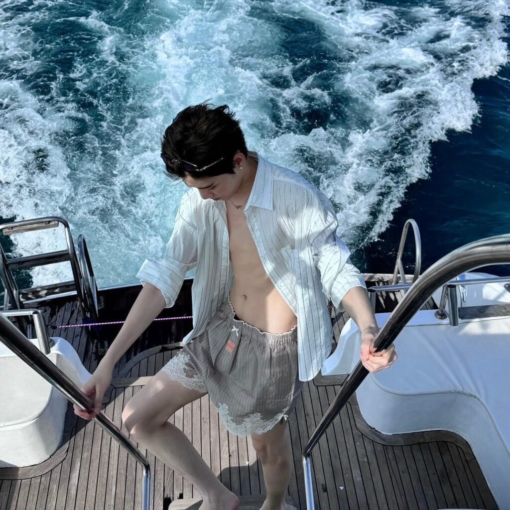 ขยับมาที่ลูกรักพระเจ้าอย่างหนุ่ม “บลู พงศ์ทิวัตถ์” ที่ทำเอาชาวเน็ตแตกแตนไม่ไหว ขยี้ตาแบบรั่วๆ เมื่อเจ้าตัวออกมาปล่อยหุ่นแซ่บถอดเสื้อเล่นน้ำ ผิวขาวจั๊วะ หน้าสัมผัสสุดๆ รูปร่างเป๊ะปัง บวกหน้าตาที่น่ารัก บอกเลยว่าองค์ประกอบร่วมคือเยี่ยมยอดสุดๆ