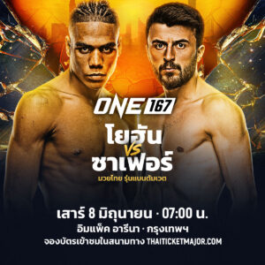 โดยคู่ของ “โยฮัน vs ซาเฟอร์” จะเข้ามาเสริมทัพความเดือดในศึก ONE 167 ซึ่งมีคู่เอกนำรายการที่แฟนทั่วโลกตั้งตารอ คือการพบกันระหว่าง “ตะวันฉาย พีเค.แสนชัย” ลงป้องกันตำแหน่งแชมป์โลก ONE มวยไทย รุ่นเฟเธอร์เวต (145 – 155 ป.) ครั้งที่สาม กับผู้ท้าชิงคู่ปรับเก่า “โจ ณัฐวุฒิ” ร่วมด้วยราชัน ONE มวยไทย รุ่นฟลายเวต (125 – 135 ป.) “รถถัง จิตรเมืองนนท์” สลับบู๊คิกบ็อกซิ่ง ขณะที่ตัวพ่อคิกบ็อกซิ่ง “สิทธิชัย ศิษย์สองพี่น้อง” และ “โนแอล กรองด์ชอง” นักสู้หญิงแกร่งลูกครึ่งไทย – ฝรั่งเศส พร้อมระเบิดฟอร์มกู้ศรัทธาแฟนกีฬาชาวไทยอีกครั้ง
