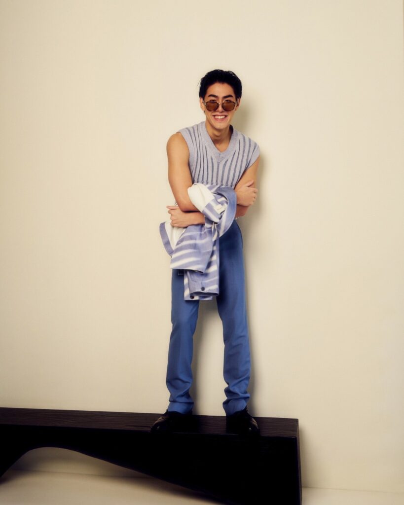 โดย เจ้าขุน มาในลุคโทนสีฟ้าอ่อนกับไอเทมคลาสสิก อย่าง เสื้อสเวตเตอร์แขนกุดถักทอลายสลับสีอ่อนเข้มกับกางเกงขายาวและแจ็กเกตลวดลาย Morning Light แสงที่ส่องผ่านมู่ลี่เวนิส (Venetian Blinds) และลุคสุดคูลกับเสื้อโค้ทและเสื้อเชิ้ตลายพิมพ์ Life Drawing แมทช์กับกางเกงยีนส์