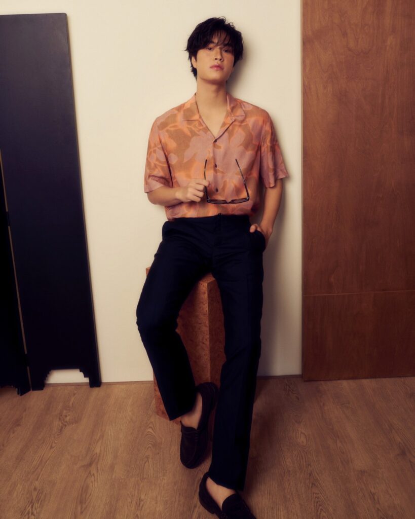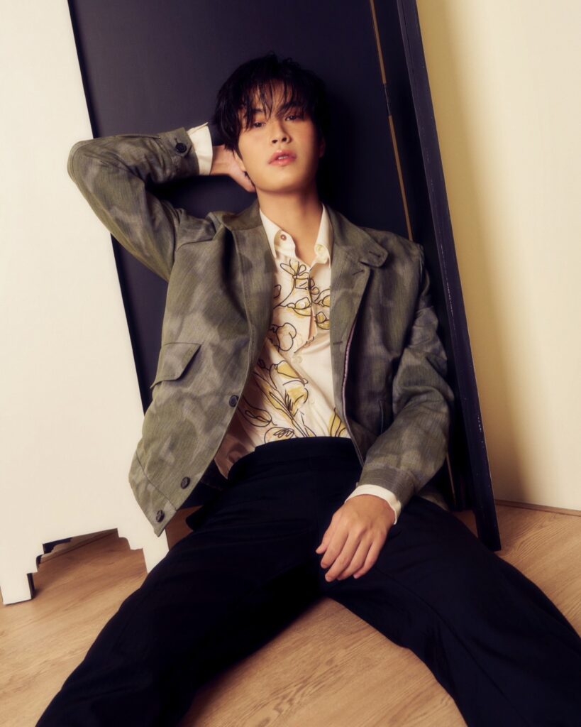 หนุ่ม เจมีไนน์ มาในลุคขี้เล่นมีสไตล์กับเสื้อเชิ้ตลายพิมพ์ดอกไม้และแจ็กเกตที่มีซิลูเอตของการตัดเย็บของสูทแบบดั้งเดิมมาผสานกับงานออกแบบที่คอนทราสต์กับชุดสไตล์เวิร์กแวร์ และเครื่องแบบทหารปรากฏเป็นลุค ‘Breakfast Suit’ แสนสบาย