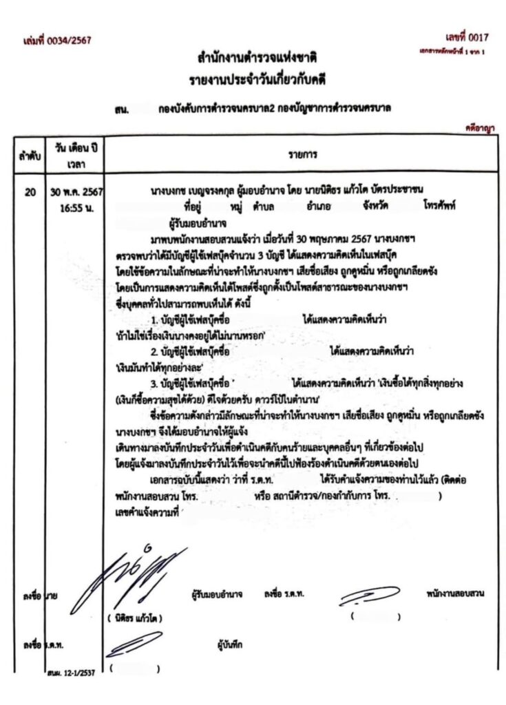 โดย “ตั๊ก บงกช” ได้ออกมาโพสต์ภาพ พร้อมเขียนแคปชั่นว่า “ความจริงแล้วเราไม่อยากจะให้มันเป็นเรื่องใหญ่ แต่เจตนาที่ทำก็เพื่อปกป้องชื่อเสียง และศักดิ์ศรี ของเรา ไม่มีใครชอบที่จะให้คนอื่นมาว่าเราเสียๆหายๆ ทั้งๆที่มันไม่ใช่เรื่องจริง ทุกคนมีสิทธิ์ลุกขึ้นมาปกป้องตัวเอง