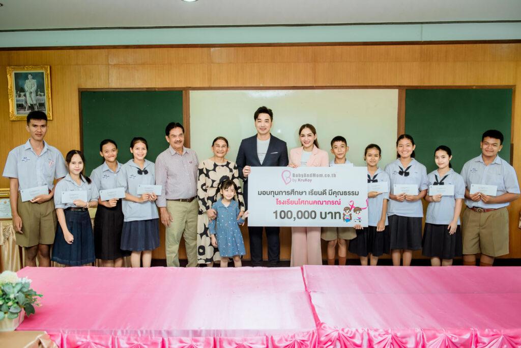 “เจมส์ เรืองศักดิ์ – ครูก้อย นัชชา” และเพจ Babyandmom.co.th มอบทุนการศึกษา 100,000 บาท รร.โศภนคณาภรณ์ จ.นครศรีธรรมราช