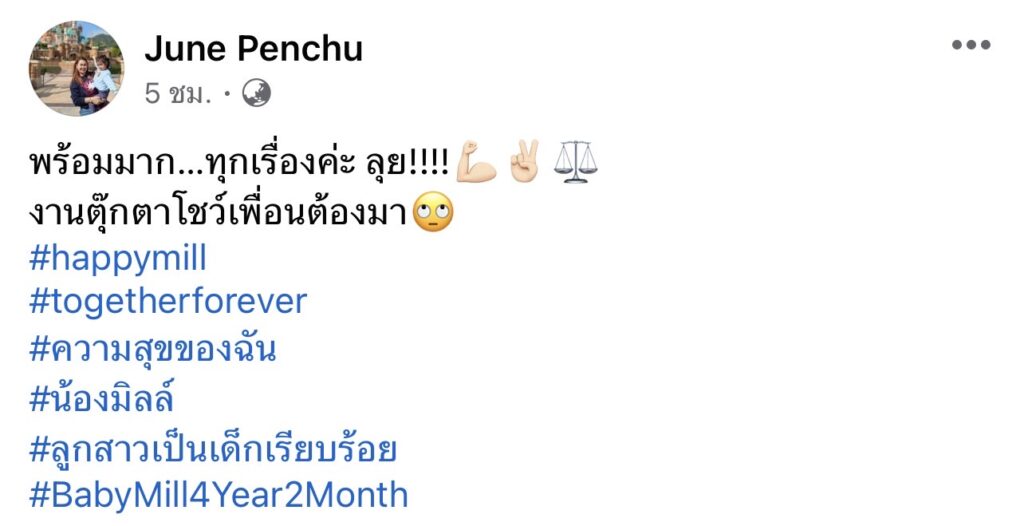 ซึ่งต่อมาทางด้าน “จูน เพ็ญชุลี” ก็ได้โพสต์ภาพคู่ลูกสาว พร้อมแคปชั่นว่า “พร้อมมาก…ทุกเรื่องค่ะ ลุย!!!!💪🏻✌🏻⚖️งานตุ๊กตาโชว์เพื่อนต้องมา🙄