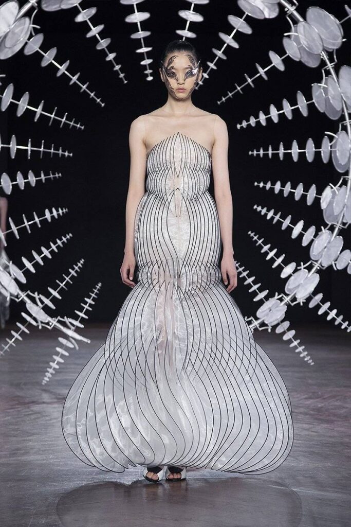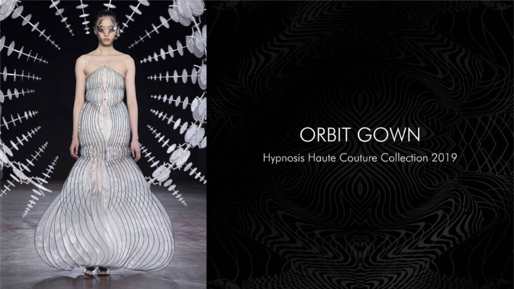 สำหรับชุดที่ “อั้ม พัชราภา” สวมใส่ ต้องใช้คำว่ามิธรรมดา เพราะนอกจากเป็นแบรนด์โอตกูตูร์จากห้องเสื้อ iris van Herpen ชุดนี้ยังใช้การผลิตที่แสนพิถีพิถัน ผนวกกับการใช้เทคนิคแบบพิเศษขั้นสูง 3D printing และ laser cut ในการทำชุด ที่กินเวลามากกว่าหลายเดือนในการผลิตต่อ 1 ชุด ซึ่งล้วนแล้วเป็นที่มาของการกำเนิดชุดโอตกูตูร์