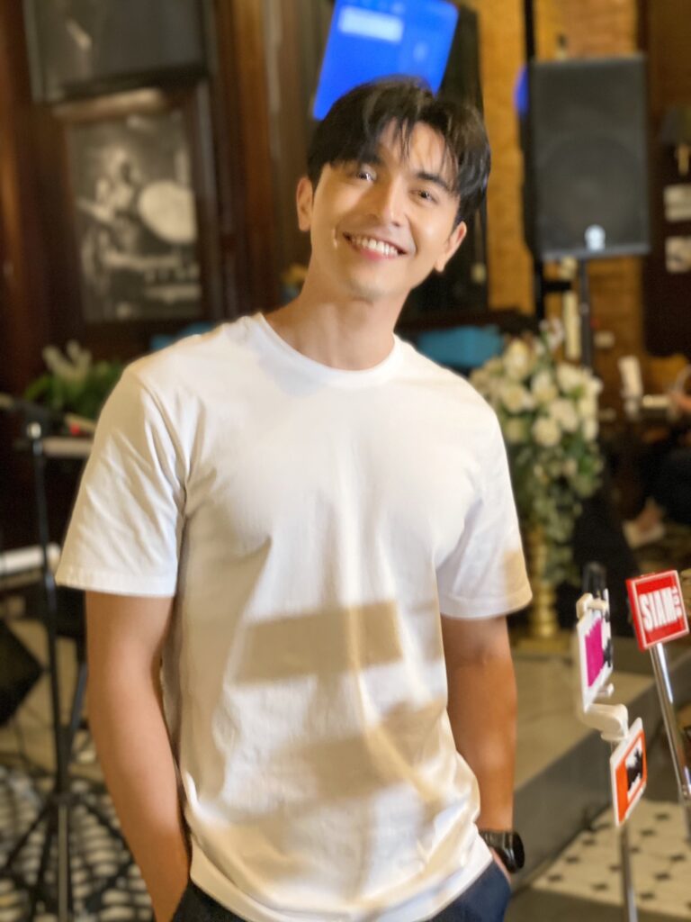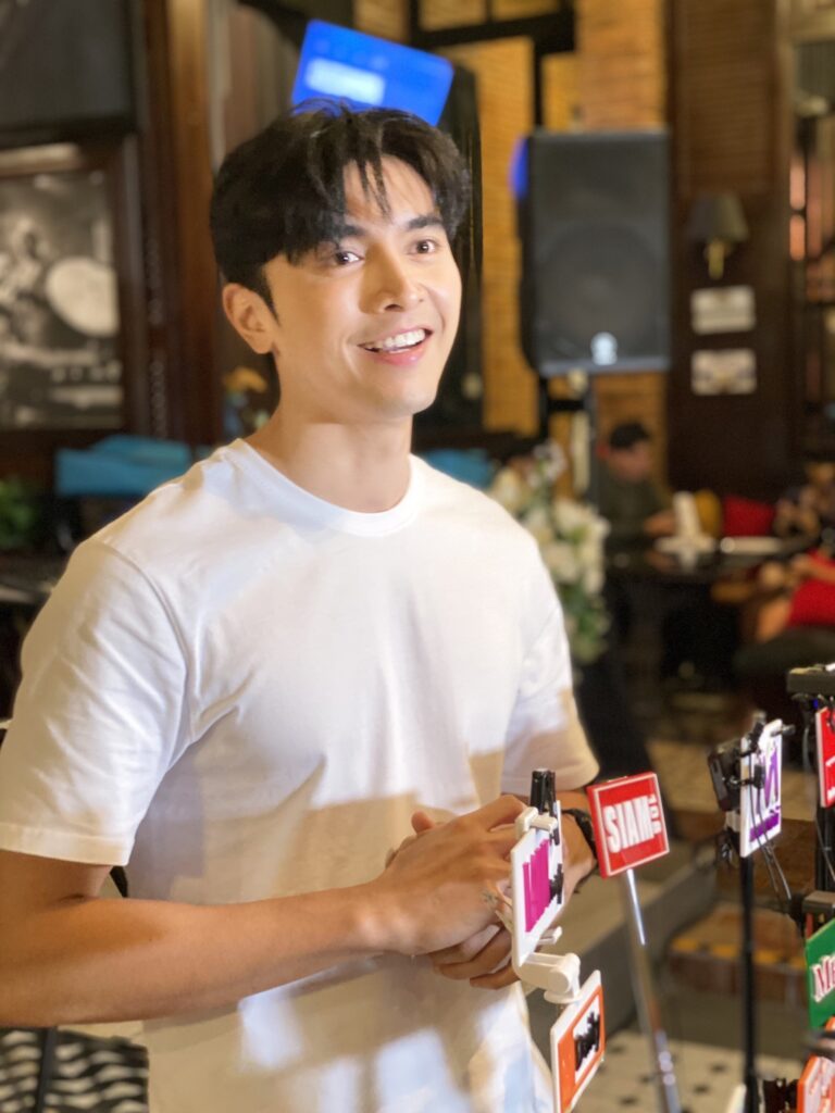 “ตกใจเลยเหรอครับ ก็นิดนึงครับ มีคนคุย ก็ให้ไปเดาเอาเองว่าเป็นใคร ผมไม่บอก ทุกคนอาจจะรู้อยู่แล้ว แต่ให้ไปสืบเอาเอง ก็ตามที่เคยบอกไลฟ์สไตล์ตรงกันครับ ก็มีไปวิ่ง ไปปั่นจักรยานบ้าง มีคนเปิดวาร์ป เท่าที่ผมส่องก็มีเปิดวาร์ปกันไปเยอะแล้วนะ ผมว่ารู้แล้วแหละ ผมไม่ต้องพูดอะไรก็ได้ ฟีดแบ็กจากแฟนคลับ ยังไม่ได้เจอแฟนคลับครับ ยังไม่ค่อยมีอีเวนต์เท่าไหร่ ช่วงนี้ถ่ายละครเยอะ ละครก็ยังไม่ได้ออนด้วย