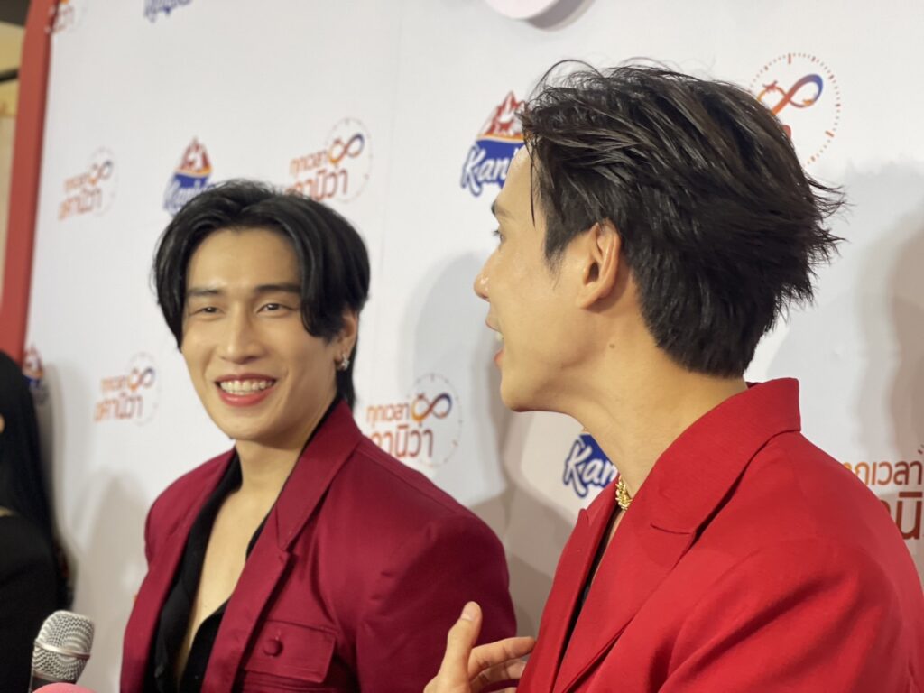 ข้ามมาที่อีกคู่ สำหรับนักแสดงหนุ่ม “ไบเบิ้ล วิชญ์ภาส” กับหนุ่ม “เจษ เจษฎ์พิพัฒ” ที่มาประกบเล่นคู่กันครั้งแรกกับในซีรีส์วาย 4 Minutes โดยทั้งคู่เปิดเผยว่า “ตื่นเต้นโปรเจกต์ใกล้ออนเดือนหน้า ทุกคนเต็มที่มาก อยากให้ผลงานออกมาดี ขอสปอยแค่ว่าเป็นเรื่องที่สนุกมาก เป็นตัวละครที่น่าจับตามอง เป็นเรื่องราวที่เอาเรื่องที่เกิดขึ้นในชีวิตมาเล่าเรื่อง ซึ่งจะได้ดู26กรกฎาคมนี้