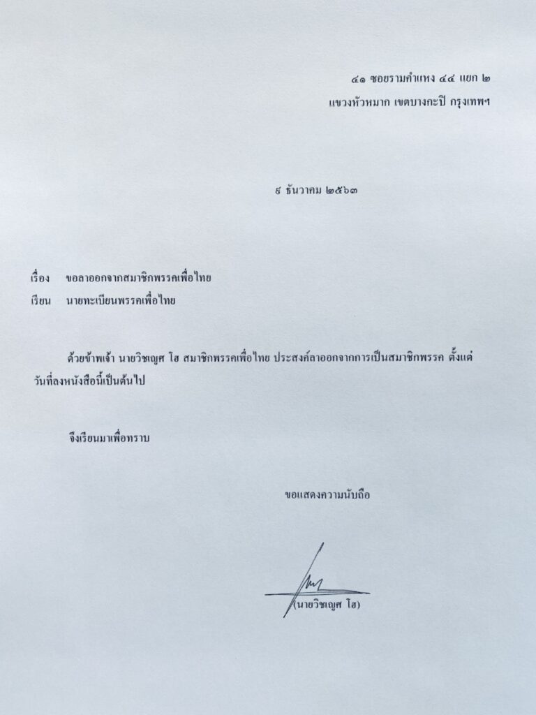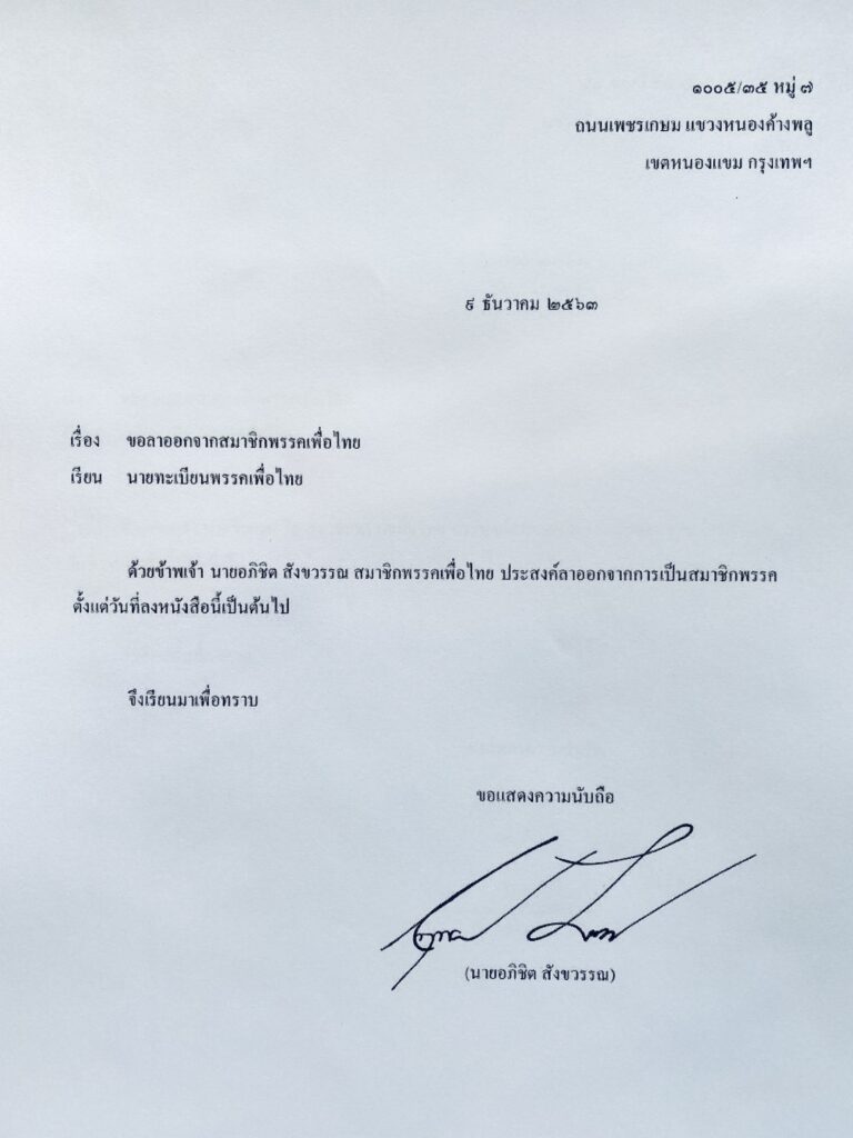 สมาชิกเพื่อไทยจำนวน5คนยื่นใบลาออกจากพรรค