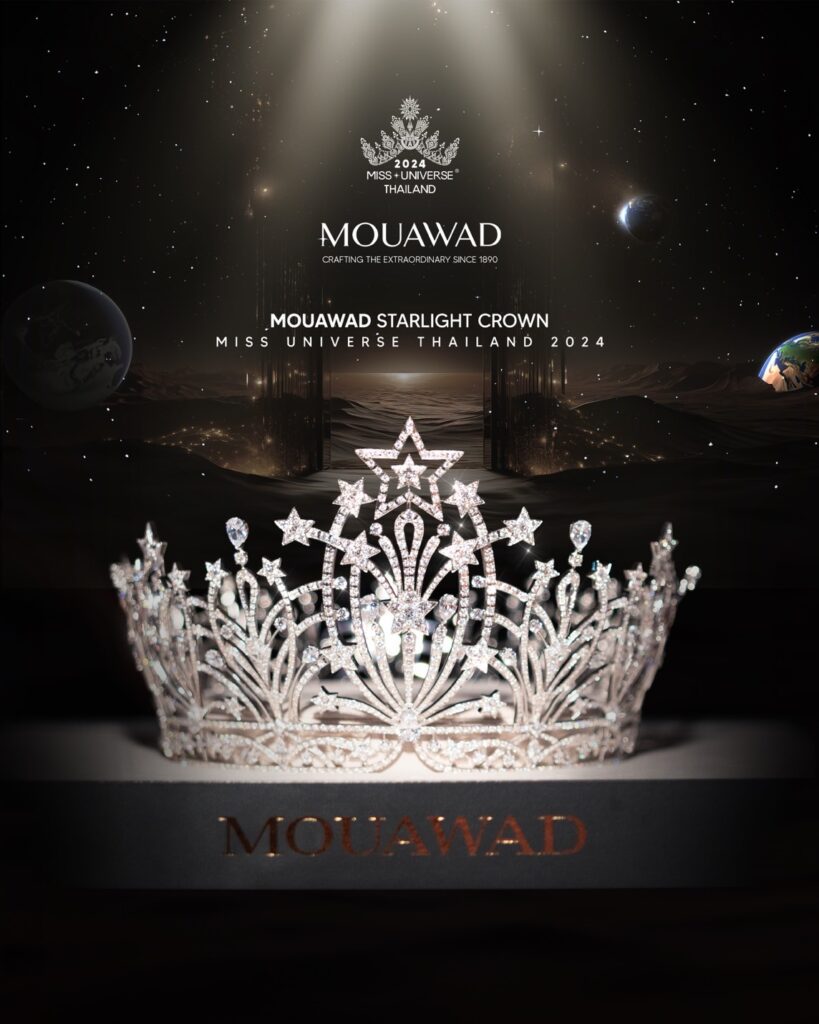 เปิดตัวอย่างเป็นทางการในงาน “Ignight The Night” สำหรับมงกุฎประจำตำแหน่ง Miss Universe Thailand 2024 จากแบรนด์เครื่องประดับสุดหรู MOUAWAD (โมอาว็าด) ในชื่อ “Starlight Crown” โดยได้แรงบันดาลใจมาจาก “ดาวเหนือ” สื่อถึงการเดินทางเพื่อบรรลุปณิธาน
