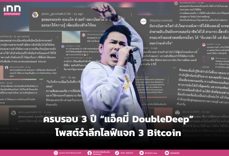 ครบรอบ 3 ปี แอ็คมี่ DoubleDeep โพสต์รำลึกไลฟ์แจก 3 Bitcoin มูลค่ากว่า 5.4 ล้านบาทให้แฟนเพลงทั่วประเทศ