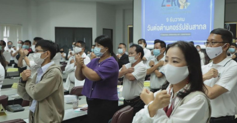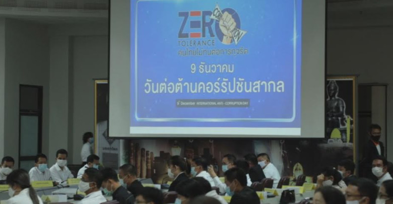 สำนักงานป.ป.ช. ประจำ จังหวัดสุโขทัย จัดกิจกรรมวันต่อต้านคอร์รัปชันสากล (ประเทศไทย) ภายใต้แนวคิด ” Zero Tolerance คนไทยไม่ทนต่อการทุจริต ” ณ ห้องประชุมศรีสัชนาลัย ชั้น 5 ศาลากลางจังหวัดสุโขทัย โดยมีนายสุชาติ ทีคะสุข รองผู้ว่าราชการจังหวัดสุโขทัย เป็นประธานเปิดกิจกรรมโดยมี หัวหน้าส่วนราชการ ข้าราชการ ผู้แทนองค์กรภาคธุรกิจ และภาคประชาสังคมเข้าร่วมงานเพื่อทุกภาคส่วนต้องตระหนักถึงภัยร้ายของการทุจริตคอร์รัปชั่น และร่วมเป็นเครือข่ายในการต่อต้านการทุจริต ปลุกจิตสำนึก ในการเป็นเครือข่ายป้องกันการทุจริต คอร์รัปชั่นอย่างยั่งยืนภายใต้การจัดงานแบบผสมผสาน (Hybrid Event) เนื่องจากในปัจจุบัน สถานการณ์การแพร่ระบาดของโรคติดเชื้อไวรัสโคโรนาโดยรับชมผ่านทาง Facebook Fanpage ของสำนักงาน ป.ป.ช.การจัดกิจกรมนี้ จะทำให้คนไทยและนานาชาติ ได้รับรู้ผลการต่อสู้กับปัญหาคอร์รัปชันของประเทศไทยและการแสดงเจตจำนงต่อต้านการทุจริตของทุกภาคส่วนในสังคมไทย จากนั้นรองผู้ว่าราชการจังหวัดสุโขทัยนำผู้เข้าร่วมกิจกรรมประกาศเจตนารมณ์ ในการต่อต้านคอร์รัปชัน และมอบโล่เกียรติยศการประเมินคุณธรรมและความโปร่งใสในการดำเนินงานของหน่วยงานภาครัฐ(จังหวัดสุโขทัย) ประจำปีงบประมาณ 2563ให้แก่เทศบาลตำบลตลิ่งชัน อ.บ้านด่านลานหอย จ.สุโขทัย อีกด้วย