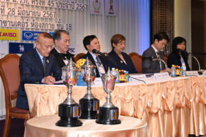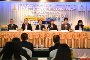 เมื่อวันที่ 28 มิ.ย.67 ที่ผ่านมา สมาคมกีฬาตะกร้อแห่งประเทศไทย จัดงานแถลงข่าวการแข่งขันตะกร้อชิงชนะเลิศแห่งประเทศไทย ชิงถ้วยพระราชทาน ม.ว.ก. ครั้งที่ 45 ประจำปี 2567 ที่ห้องสกาย ชั้น 18 โรงแรมอเล็กซานเดอร์ หัวหมาก กรุงเทพฯ โดยมี นายธนา ไชยประสิทธิ์ นายกสมาคมกีฬาตะกร้อฯ ในฐานะประธานคณะกรรมการจัดการแข่งขันฯ เป็นประธาน