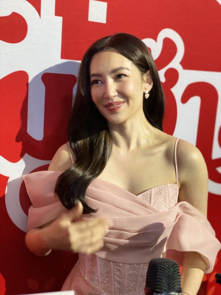 “รูปในในสต็อกมีไหม ไม่บอก คือตอนนี้เขาอยู่ไทยเยอะขึ้น ถามว่าเพราะเราไหม ก็อาจจะ… ไม่ใช่ๆ ด้วยงานเขาที่ปรับให้ไม่ต้องเดินทางเยอะมากแล้วเลยมีโอกาสได้อยู่ไทยเยอะขึ้น เลยได้เจอกัน สถานะตอนนี้เบลว่าไม่ต้องรีบร้อน คนแซวว่าที่สะใภ้หมื่นล้าน ก็ขอบคุณทุกกำลังใจแล้วกันค่ะ ก็ขอบคุณทุกๆ คนที่ให้ความสนใจ ส่วนที่คนรอบข้างคอนเฟิร์มว่าเขาดีจริงๆ ถามว่าใจฟูไหม มันเป็นเรื่องของเวลามากกว่า เรายังต้องเรียนรู้กันอีกหลายๆ เรื่อง