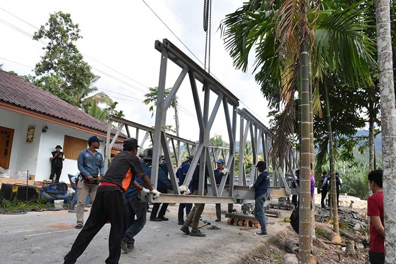 ชป.เดินหน้าติดตั้งสะพานเบลีย์ข้ามคลองละอายนุ้ยจ.นครศรีฯ