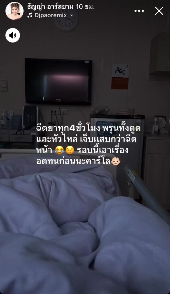 “ธัญญ่า อาร์สยาม” แอดมิท รพ. กลางดึก หลังท้องแข็ง ปากมดลูกเปิด ต้องฉีดยาระงับคลอด