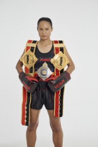และใน RWS – Rajadamnern World Series 2023 นักมวยสาวชนเผ่าปกาเกอะญอ ขยับน้ำหนักขึ้นไปชกในรุ่น 118 ปอนด์ แต่ก็ยังรักษาฟอร์มอันยอดเยี่ยมเอาชนะคะแนน เงาพระจันทร์ ลูกทรายกองดิน คว้าแชมป์ไปครองพร้อมเงินรางวัล 3 ล้านบาท