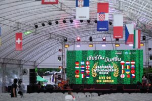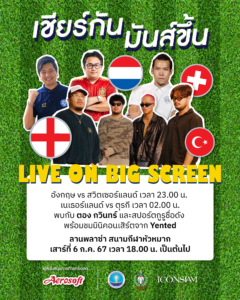 ซึ่งกิจกรรม ‘เชียร์กัน มันส์ขึ้น ศึกฟุตบอลยุโรป 2024 LIVE ON BIG SCREEN’ เดินทางมาถึงสัปดาห์ที่ 2 เข้าสู่รอบ 8 ทีมสุดท้าย ในวันเสาร์ที่ 6 ก.ค. 67 นำทัพเชียร์โดย ‘ตอง’ กวินทร์ ธรรมสัจจานันท์ นักฟุตบอลทีมชาติไทย ร่วมด้วยนักพากย์ อินฟลูเอนเซอร์ และศิลปินชื่อดัง ที่จะมาสร้างสีสันให้การเชียร์บอลสนุกมากขึ้นกว่าเดิม ณ ลานพลาซ่า สนามกีฬาหัวหมาก 18:00 น. เป็นต้นไป และยังเอาใจคอบอลด้วยกิจกรรมสุดพิเศษมากมายอย่างต่อเนื่อง