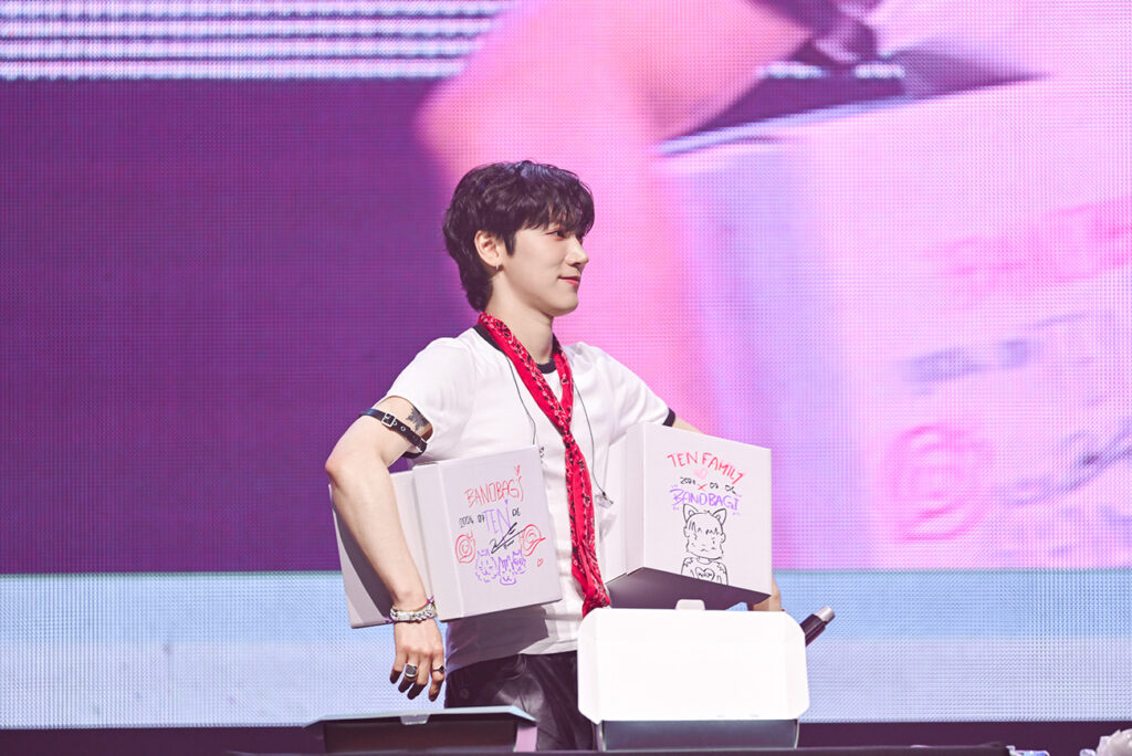 อีกช่วงที่น่าประทับใจคือ TEN’s GLOW PRESENT! เป็นช่วงที่เตนล์จัดกล่องของขวัญที่เต็มไปด้วยบาโนบากิ เพื่อมอบให้กับแฟนคลับผู้โชคดี ใครได้ไปรับรองหน้าใสไม่แพ้เตนล์! และปิดท้ายด้วยโชว์เท่ๆ ในเพลง Dangerous และ NightWalker เรียกได้ว่าเป็นอีกหนึ่งความทรงจำดีๆ ที่เตนล์ และเลิฟลี่ ร่วมสร้างด้วยกัน เต็มอิ่มไปด้วยรอยยิ้ม และเสียงหัวเราะ พร้อมเซอร์ไพรส์แบบอัดแน่นกับเพลงไทยสุดฮิตที่เตนล์เคยร้องไว้ในรายการดัง ทำเอาแฟนๆ กรี๊ดลั่นพร้อมร้องตามกันดังสนั่นฮอลล์ บอกได้คำเดียวงานนี้เต็มสิบไม่หัก!