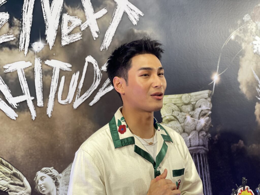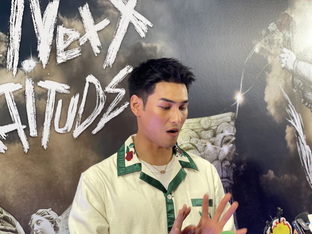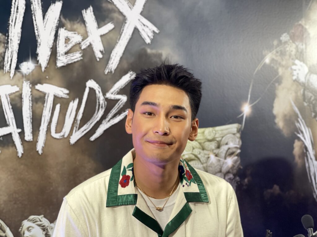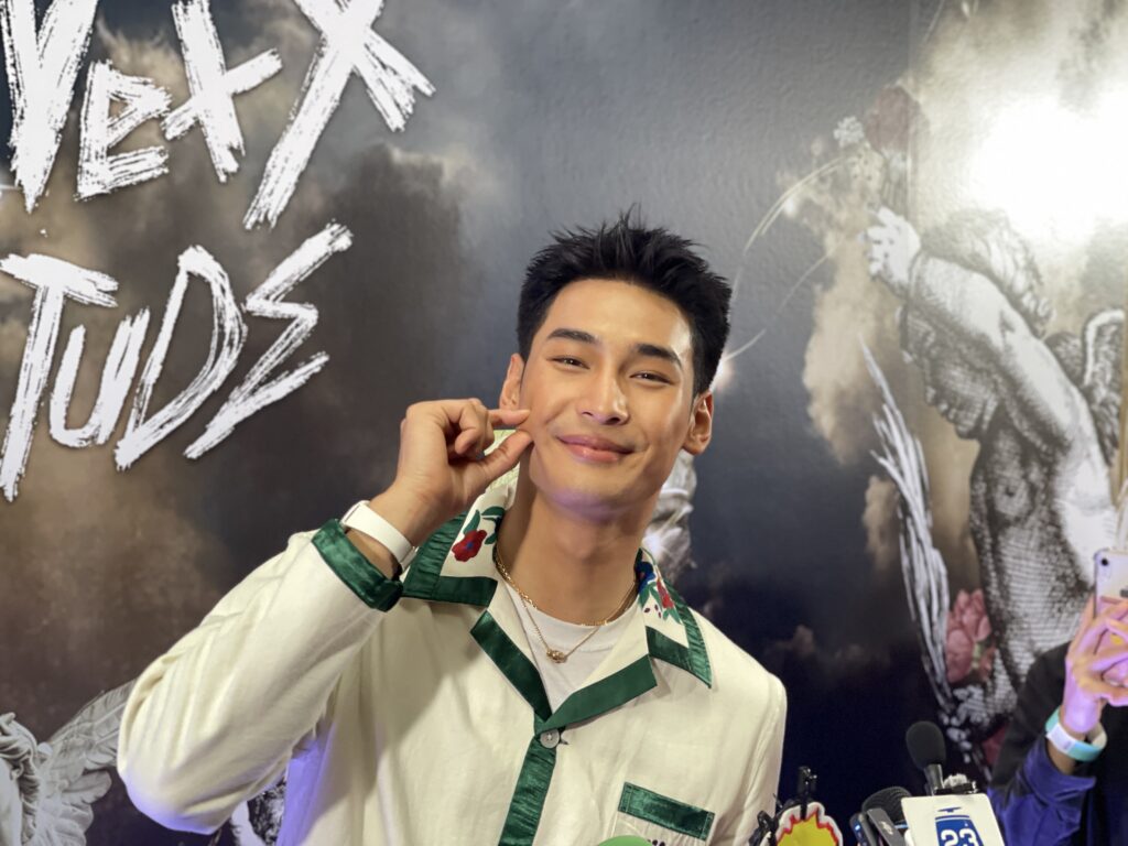ทางด้านดราม่าโดนโยงทำสนามบินแตก คือวันนั้นเรื่องราวมันบังเอิญมาก พอดีมีแฟนคลับศิลปินเกาหลีเขามารอศิลปิน แล้วเราก็เดินเข้าไปแบบเขินๆเพราะคนเยอะมาก ยอมรับว่าเห็นข่าวซึ่งตนก็ไม่สามารถควบคุ้มได้ ก็อยากจะขอร้องให้อยู่ในกฎระเบียบทุกคน ส่วนตัวยังไม่มีโอกาสเจอแฟนคลับเลย เพื่งมาเจอวันนี้ เผยเป็นห่วงทุกความรู้สึกต่างคนต่างมุมมองแต่เรื่องราวมันก็ผ่านมาแล้วให้กำลังใจทุกคน ลั่นขอโทษทุกฝ่ายหากเกิดอะไรขึ้นส่วนแฟนคลับประชิดตัว โชคดีตนเรียนแอคชั่นมาเยอะเลยหลบได้ ตอนนี้ก็ยังไม่มีเหตุการณ์ไหนที่ทำให้ได้รับบาดเจ็บ ยังคงรับมือได้อยู่”