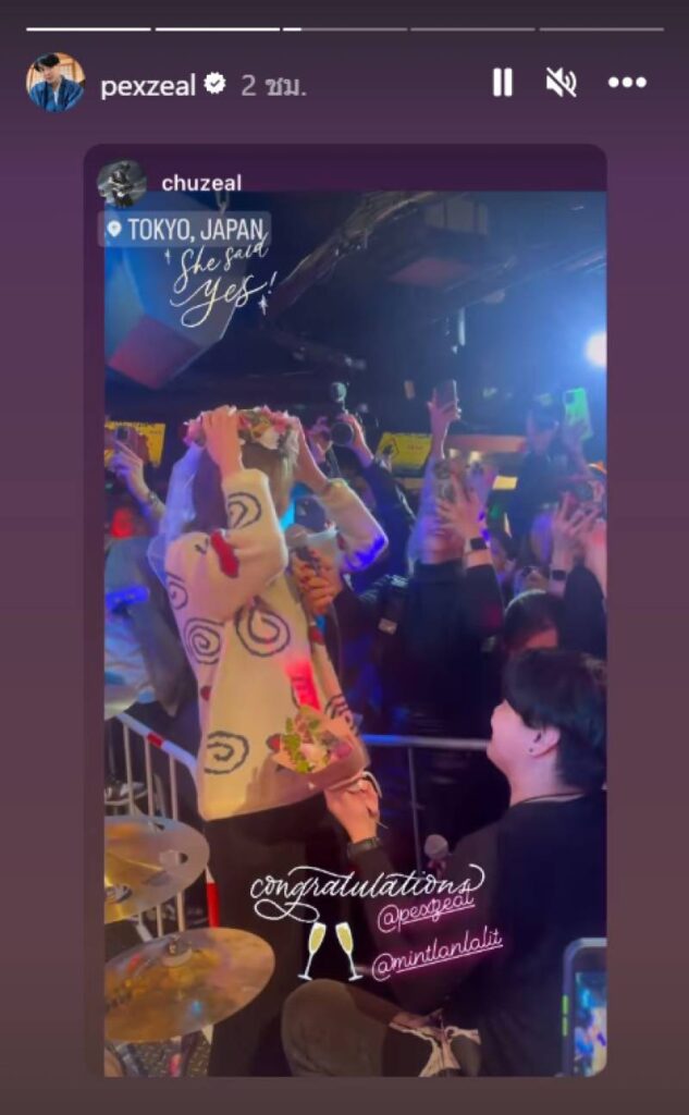 เรียกว่าก่อนหน้านี้ได้ทำเซอร์ไพรส์คุกเข่าขอแฟนสาวแต่งงานที่ประเทศญี่ปุ่น สำหรับนักร้องหนุ่ม “เป๊กซ์ วง Zeal หรือ ปราชญ์ พงษ์ไชย” ขณะขึ้นเวทีร้องเพลง ท่ามกลางแฟนคลับแห่แสดงความยินดีเป็นจำนวนมาก