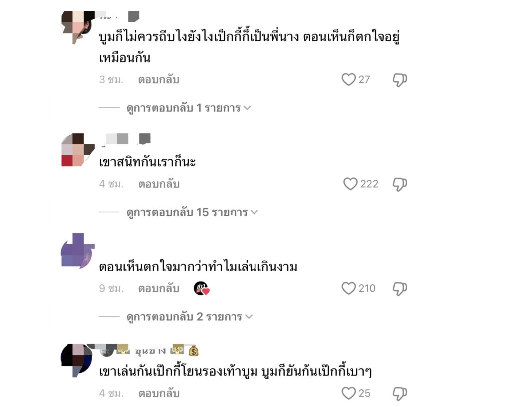 แต่งานนี้ชาวเน็ตที่เห็นคลิปต่างก็เสียงแตกมองว่า “บูม” ทำแรงเกินไป ไม่รู้จักกาลเทศะ แต่ชาวเน็ตบางกลุ่มก็มองว่าเขาเล่นกันธรรมดา สองคนนี้เขาสนิทกันอยู่แล้ว