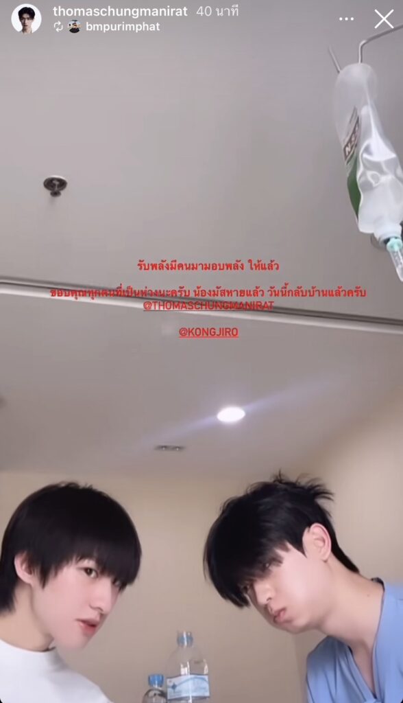ล่าสุดเรียกว่าด้อมใจฟูไม่น้อย เมื่อทางด้าน “โทมัส” ป่วยไม่สบายจึงต้องจำเป็นต้องแอดมิท งานนี้ทาง “ก้อง” ก็ได้เดินทางไปเยี่ยมดูแลถึงโรงพยาบาล พร้อมส่งกำลังใจให้สู้ๆ ซึ่งพอคลิปถูกเผยแพร่ออกไป แฟนคลับก็ต่างออกแชร์พร้อมติดแฮชแท็กจนขึ้นเทรนด์X พร้อมแซวว่าได้กำลังใจดีแบบนี้หายป่วยแล้วแหละ