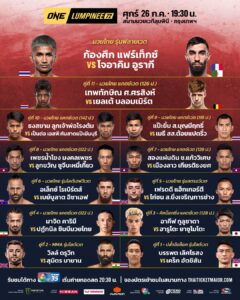 โปรแกรมการแข่งขันทุกคู่ศึก ONE ลุมพินี 72