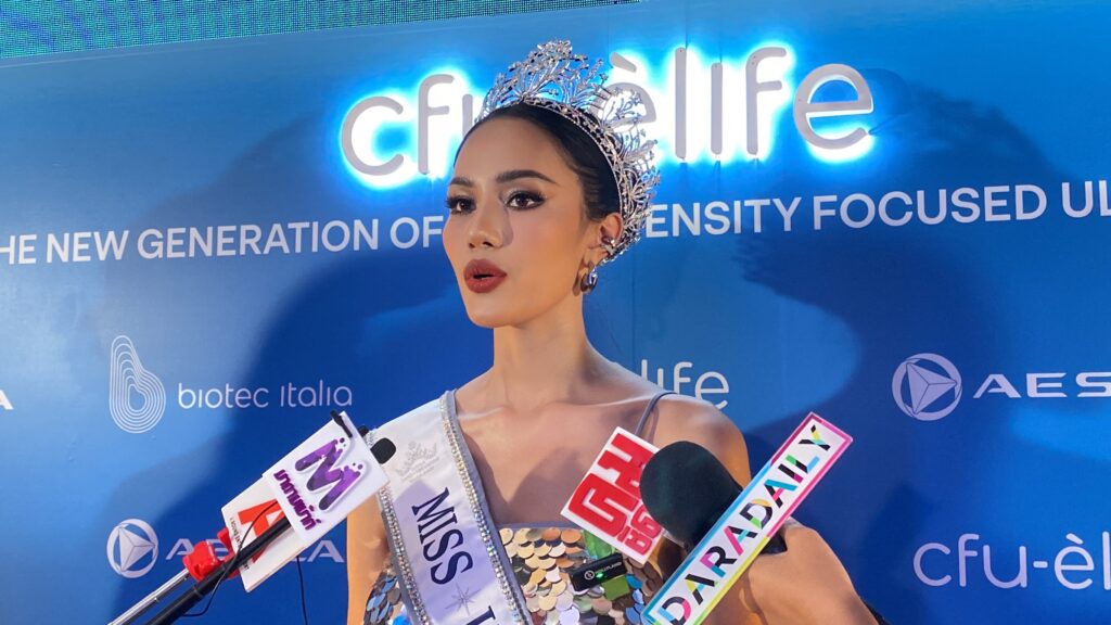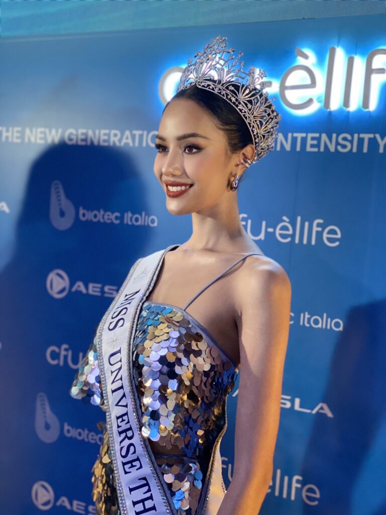 “สำหรับการเตรียมตัวไปเวทีมิสยูนิเวิร์ส ตอนนี้ก็ลงคิวเทรนเริ่มแน่นแล้วค่ะ แต่ว่าเราก็ต้องออกงานด้วยในฐานะ มิสยูนิเวอร์ส 2024 ยังต้องเทรนหลายอย่าง ไม่ว่าจะเป็นเรื่องของการออกกำลังกาย การใช้เสียง หรือเรื่องอะไรต่างๆ ก็ยุ่งอยู่ แต่ว่าก็เต็มที่ค่ะ ก็จะทำให้ทุกคนภูมิใจ”