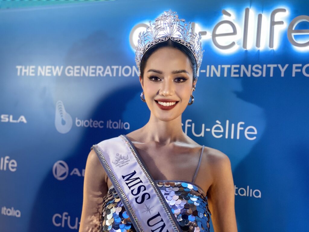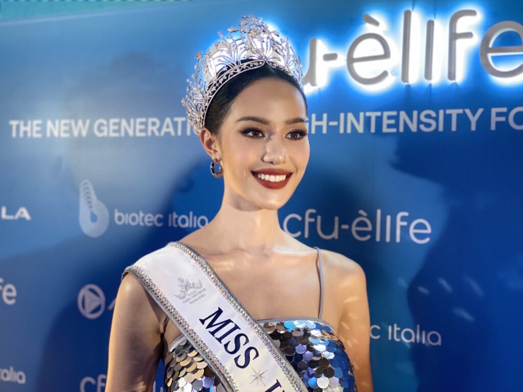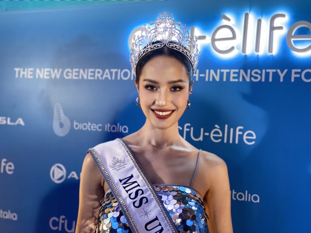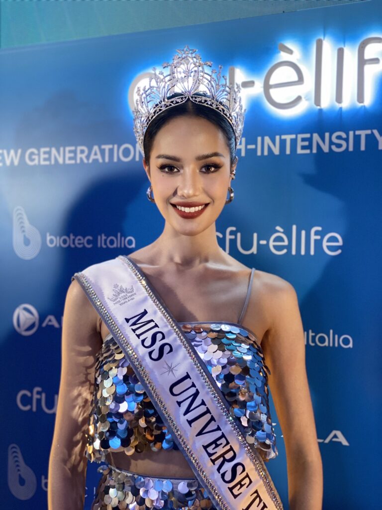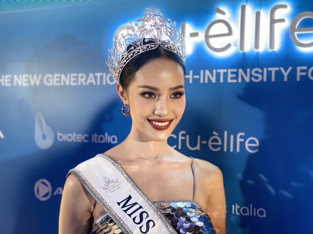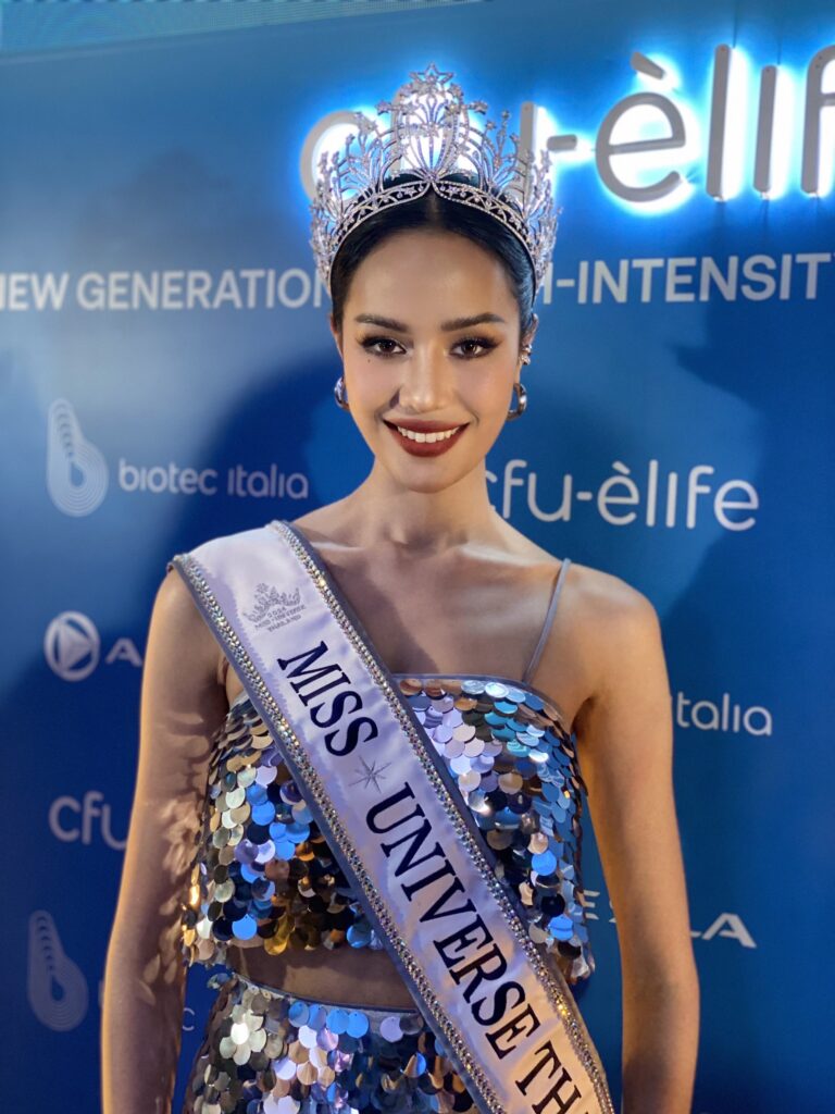 “สำหรับการเตรียมตัวไปเวทีมิสยูนิเวิร์ส ตอนนี้ก็ลงคิวเทรนเริ่มแน่นแล้วค่ะ แต่ว่าเราก็ต้องออกงานด้วยในฐานะ มิสยูนิเวอร์ส 2024 ยังต้องเทรนหลายอย่าง ไม่ว่าจะเป็นเรื่องของการออกกำลังกาย การใช้เสียง หรือเรื่องอะไรต่างๆ ก็ยุ่งอยู่ แต่ว่าก็เต็มที่ค่ะ ก็จะทำให้ทุกคนภูมิใจ”