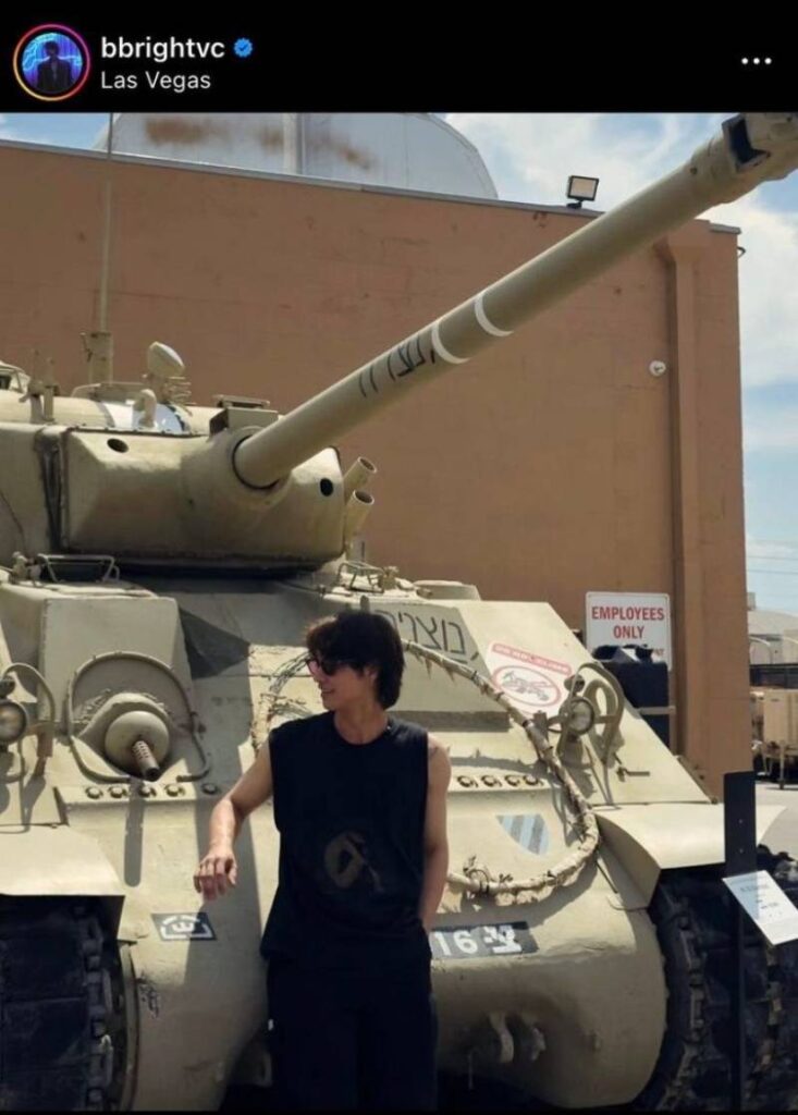 เรียกว่าเป็นดราม่าร้อนระอุพายุเข้าหนักมาก สำหรับนักแสดงหนุ่ม ไบร์ท วชิรวิชญ์“ไบร์ท วชิรวิชญ์” ที่ได้ออกมาโพสต์ภาพ คู่รถถังและอาวุธสงคราม ขณะไปเยี่ยมชมสนามยิงปืนและพิพิธภัณฑ์ทหารกลางแจ้ง BATTLEFIELD VEGAS พร้อมระบุแคปชั่นว่า “like a soldier” โซรีท่ามกลางชาวเน็ตเข้ามาต่อมาตำหนิสนั่นบนโลกออนไลน์ ทำนองว่าการถ่ายภาพคู่รถถัง อาจดูเหมือนเป็นการกำลังสนับสนุนสงครามระหว่างปาเลสไตน์ กับ อิสราเอล ที่ฉนวนกาซาอยู่หรือไม่