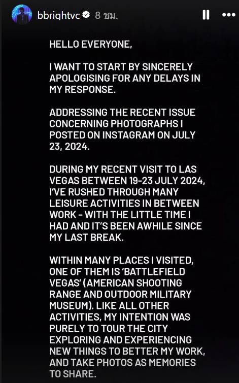 จนล่าสุดทางด้าน “ไบร์ท” ก็ออกมาเคลื่อนไหวมลบภาพดังกล่าว พร้อมร่ายยาวชี้แจงเป็นภาษาอังกฤษ