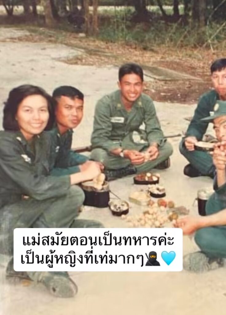 นอกจากนี้ในคลิปยังมีภาพที่เรียกว่าหาดูยากของคุณแม่เอวาสมัยเป็นทหาร ซึ่งเอวาก็ได้เขียนแคปชั่นร่ายยาวใต้คลิปถึงคุณแม่อีกด้วยว่า..