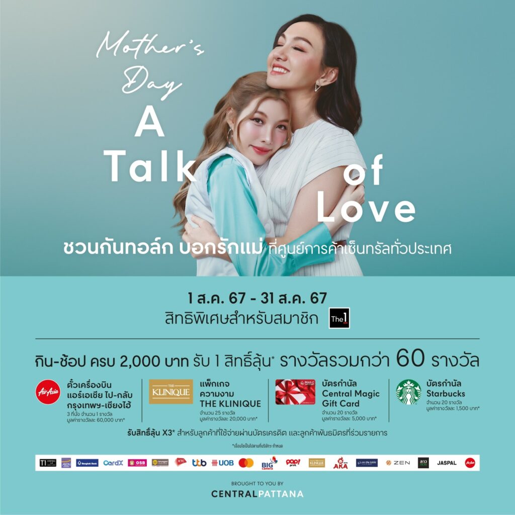 กรุงเทพฯ – เซ็นทรัลพัฒนา เปิดพื้นที่ศูนย์การค้าทั่วประเทศ ให้ครอบครัวเปิดใจและใช้เวลาร่วมกัน สื่อสารกันมากขึ้นกับแคมเปญ “Mother’s Day: A Talk of Love” พร้อมให้ทุกคนในครอบครัวมาทำกิจกรรม ช้อป-กิน-ฟิน และเลือกของขวัญสุดพิเศษให้คุณแม่สุดที่รัก ทำให้เดือนสิงหาคมเป็นอีกเดือนที่น่าประทับใจสำหรับทุกครอบครัว