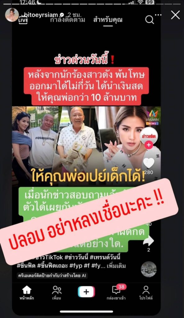 “ใบเตย อาร์สยาม” ลั่นข่าวให้เงินพ่อ10ล้านเปย์เด็กไม่จริง วอนคนอย่าหลงเชื่อ ชาวเน็ตสั่งกำลังใจให้กระจาย
