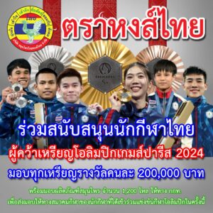 บริษัท สมุนไพรไทย หงส์ไทย จำกัด ร่วมสนับสนุนนักกีฬาไทย ผู้คว้าชัยชิงเหรียญ โอลิมปิก ปารีส 2024 มอบให้กับนักกีฬาทุกเหรียญรางวัล ท่านละ 200,000 บาท พร้อมมอบผลิตภัณฑ์สมุนไพร จำนวน 1,200 โหล ให้ทาง กกท. (การกีฬาแห่งประเทศไทย) เพื่อส่งมอบให้ทางสมาคมกีฬาของนักกีฬาที่ได้เข้าร่วมแข่งขันกีฬาโอลิมปิกในครั้งนี้