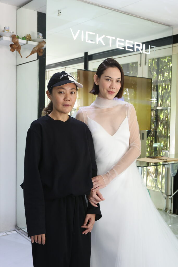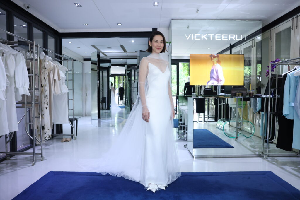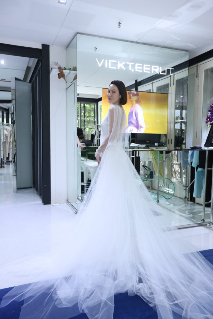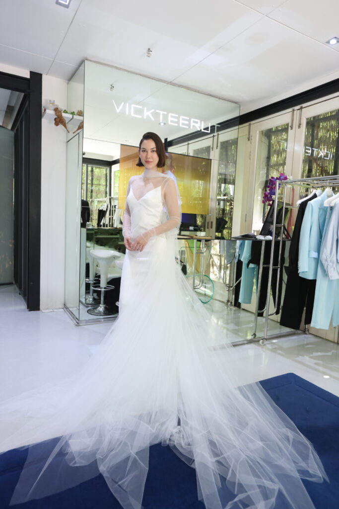 โดยเจ้าสาวคนสวย แมท-ภีรนีย์ คงไทย ได้เผยถึงเหตุผลที่เลือกชุดจากแบรนด์ VICKTEERUT ว่า “ส่วนตัวแมทได้มีโอกาสมาชมโชว์และถ่ายแบบให้แบรนด์อยู่ตลอด พอจะแต่งงานก็เลยเข้ามาหาพี่แป้ง VICKTEERUT ซึ่งตอนแรกที่ได้คุยกันเราไม่มีโจทย์อะไรให้พี่แป้งเลย เพราะเราเองก็ไว้ใจพี่เขา เรารู้ว่าเขาจะรู้ว่าเราชอบแบบไหน แบบว่าตามสไตล์พี่แป้งไปเลย พอวันที่ได้ลองชุดครั้งแรกแล้วน้ำตาซึมออกมาเลย เพราะรู้สึกว่าชุดที่ตัดออกมาเป็นตัวเราทั้งหมด และจริงๆ แมททำงานกับ VICKTEERUT มาค่อนข้างบ่อย แบรนด์จะมีสไตล์ของตัวเองที่ชัดเจนอยู่แล้ว เราเลยพูดคุยกันแบบไม่ได้ลงรายละเอียดมาก เขาเข้าใจในคาแรกเตอร์ของแมทอยู่แล้ว และชุดที่ออกมาก็ตรงกับตัวเรามากเลยค่ะ ช่วงหลังของชุดที่แมทชอบมาก คือ การหยิบนำคลังผ้าในอาร์ไคฟท์ของเเบรนด์มานำเสนอในซิลูเอทที่เเปลกใหม่ เป็นตัวตนเราเองจริง ๆ ดูเรียบ แต่มีความเท่ เรียกว่าดูแล้วเรียบโก้ในสไตล์แมทมาก ดูแล้วเป็นตัวเราที่สุดค่ะ”