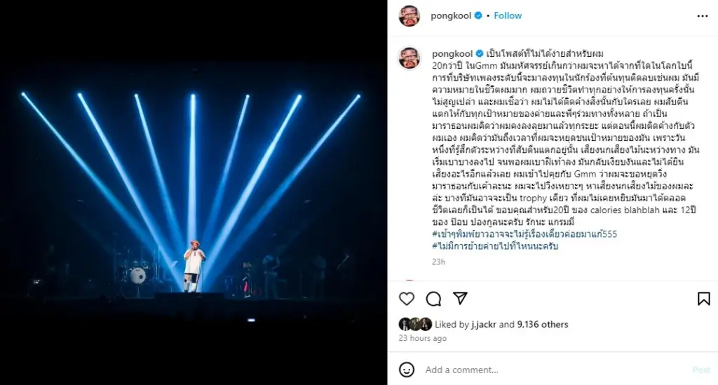 แฟนๆใจหาย! “ป๊อป ปองกูล” ประกาศลาออกจากGMM ลั่น20ปีที่เปลี่ยนชีวิต ชาวเน็ตเข้ามาคอมเมนต์กระจาย