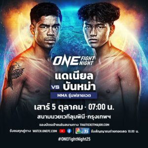 เผยโฉมคู่มวยไฮไลต์เพิ่มอีก 1 คู่ ในศึก ONE Fight Night 25 ที่จะถ่ายทอดสดจากสนามมวยเวทีลุมพินี (รามอินทรา) ในช่วงไพรม์ไทม์อเมริกา ซึ่งตรงกับช่วงเช้าเวลา 07.00 น. ในเช้าวันเสาร์ที่ 5 ต.ค.นี้ โดยจะเป็นการพบกันของ 2 จอมบู๊ใจเด็ด ระหว่าง “แดเนียล วิลเลียมส์” นักสู้หนุ่มลูกครึ่งไทย-ออสซี เจ้าของวลีเด็ด “ชนแก้ว” ประชันเดือดกับ “บันหม่า ตั่วจี๋” นักสู้ดาวดังจากประเทศจีน ในกติกาการต่อสู้แบบผสมผสาน (MMA) รุ่นฟลายเวต (125-135 ป.)